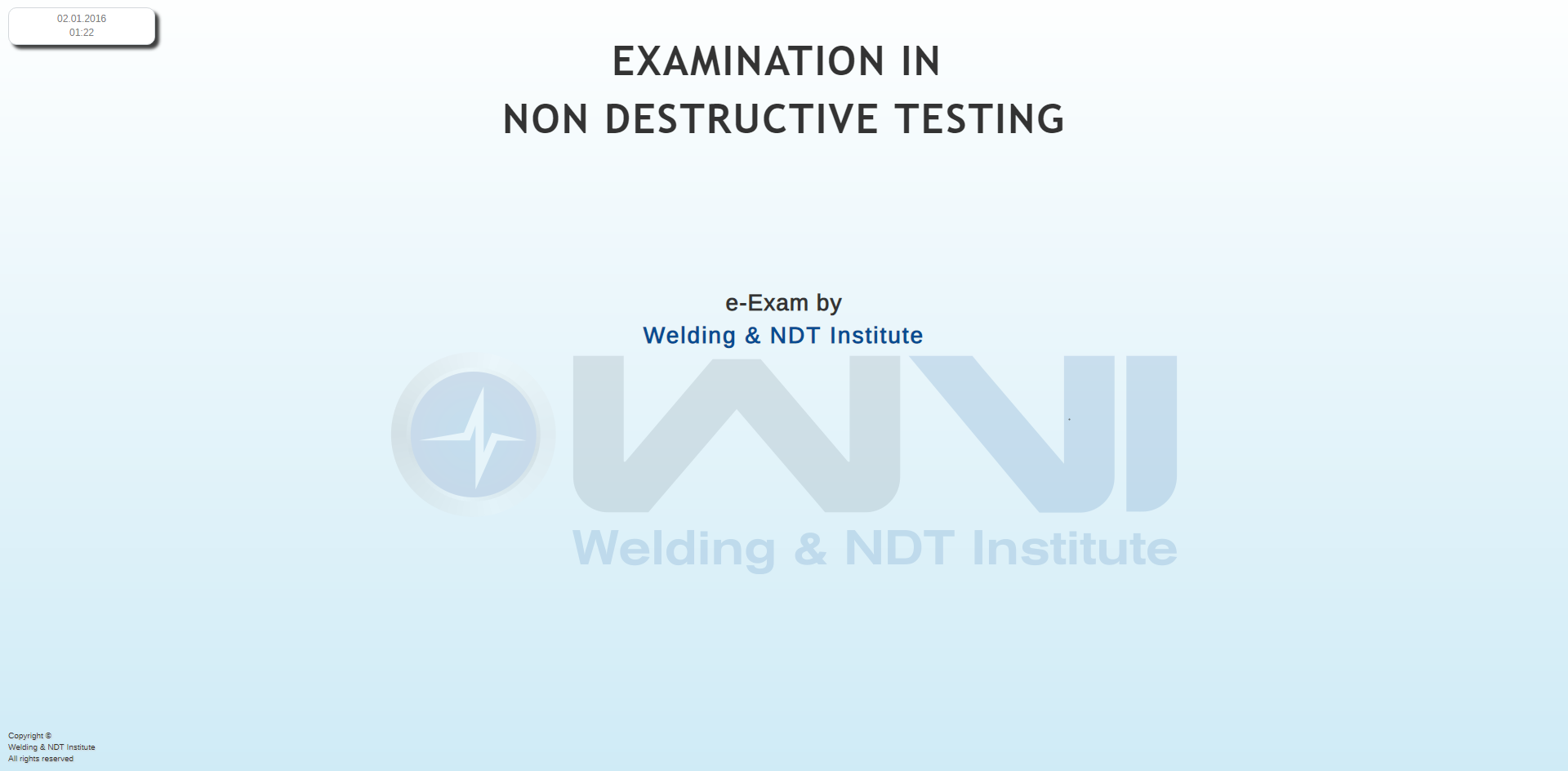 Σε όλους τους εκπαιδευόμενους παρέχεται το θεωρητικό υπόβαθρο με σημειώσεις και εκπαιδευτικά συγγράμματα, ερωτήσεις πολλαπλών επιλογών και ανάπτυξης που αναλύονται κατά την εκπαιδευτική διαδικασία καλύπτοντας όλες τις θεματικές ενότητες και προετοιμάζοντας επαρκώς τον εκπαιδευόμενο αλλά και τον υποψήφιο για τις εξετάσεις πιστοποίησης. Η θεωρητική εξέταση πραγματοποιείται μέσω της ηλεκτρονικής πλατφόρμας «e-Exam by Welding & NDT Institute» με ερωτήσεις πολλαπλής επιλογής, διασφαλίζοντας την αντικειμενική και ταχεία αξιολόγηση των γνώσεων.